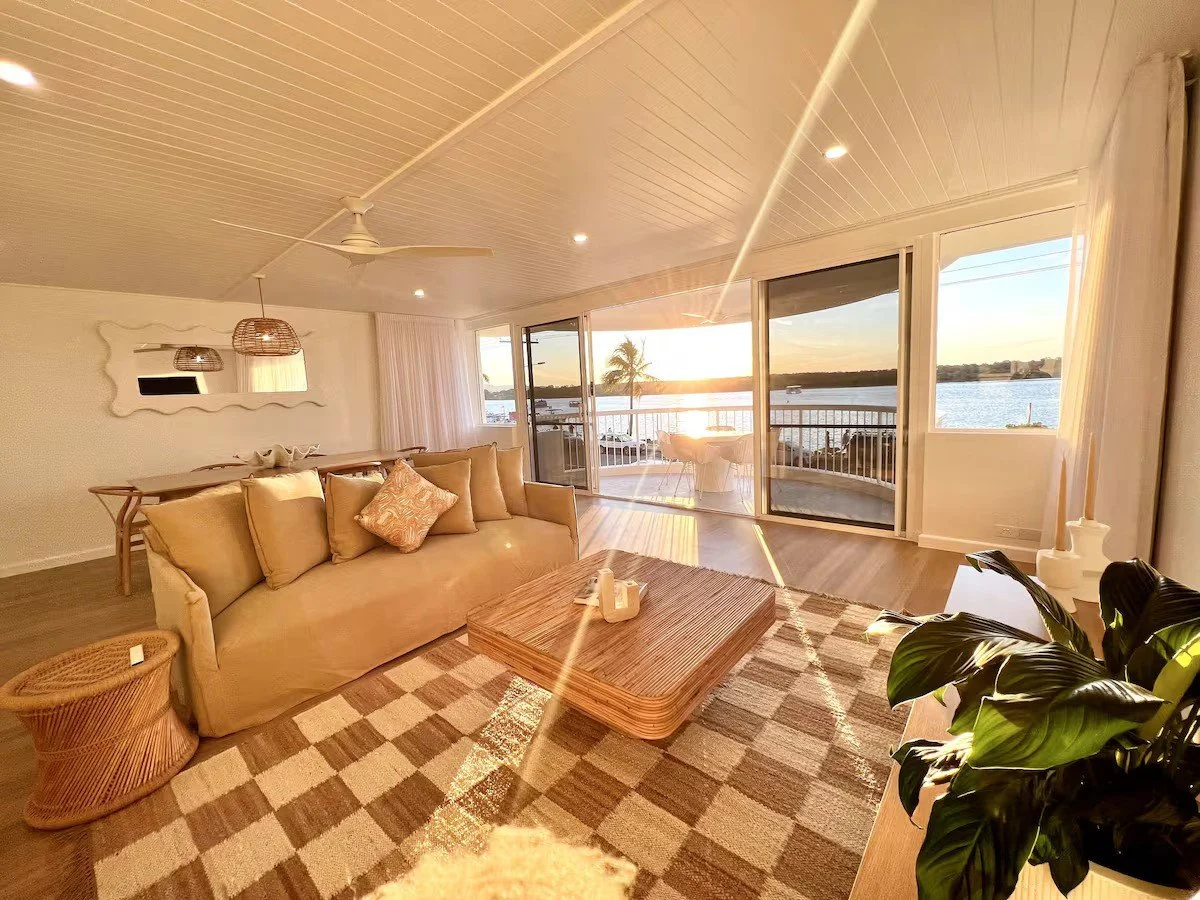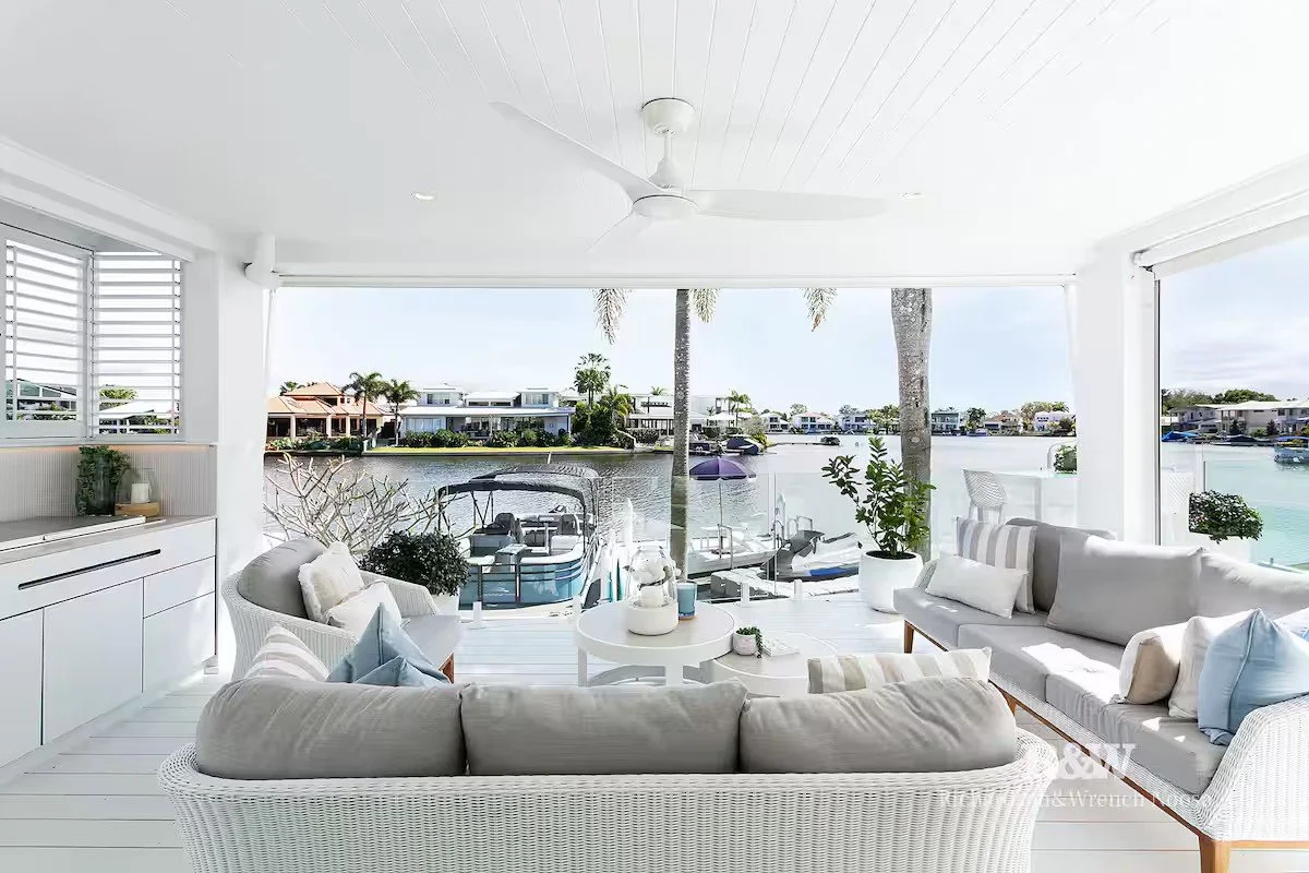 From the moment you step inside, soaring ceilings, walls of glass, and polished timber floors create a bright, airy atmosphere that flows seamlessly from the grand entryway to the waterside alfresco entertaining terrace.