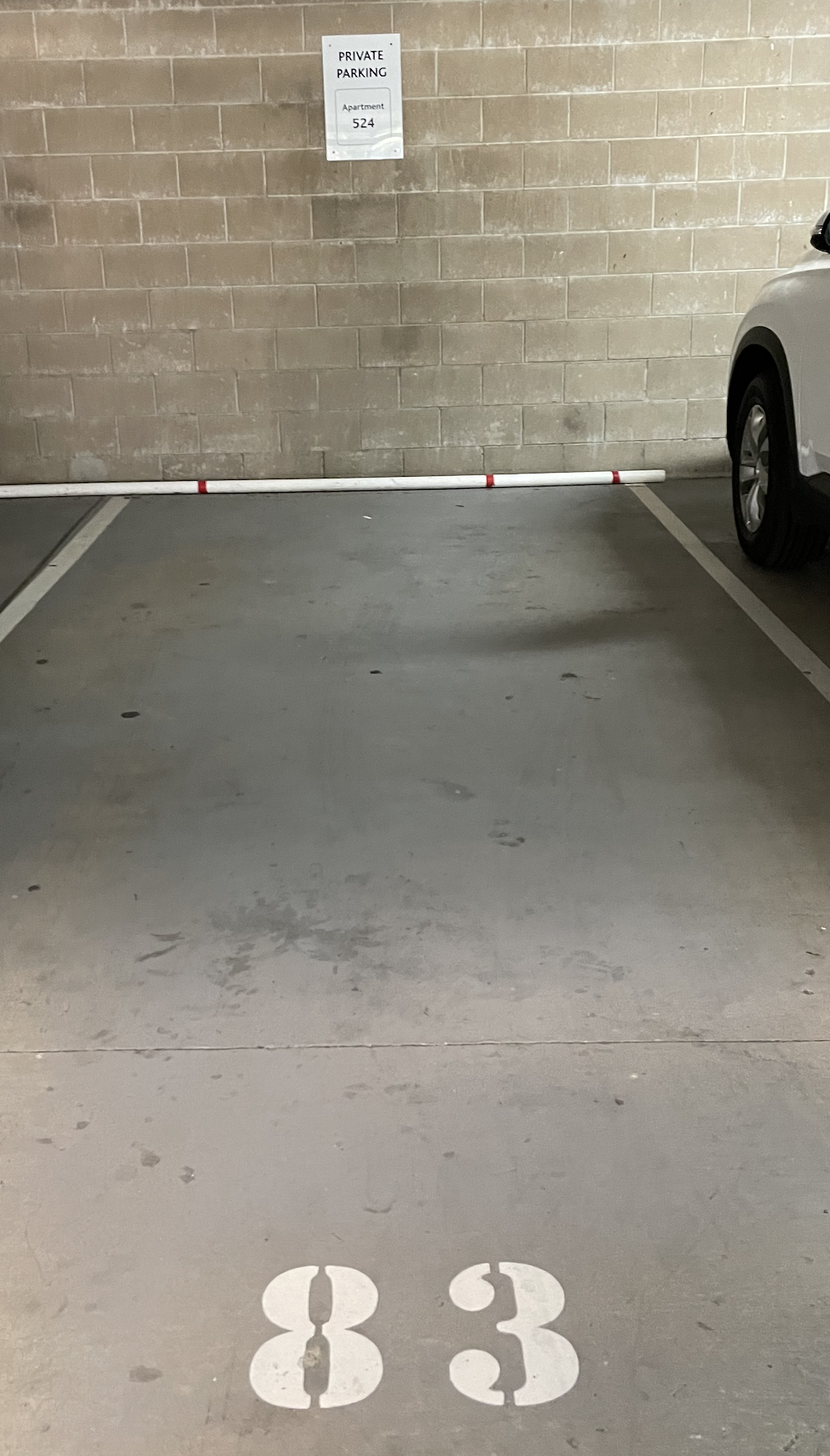 Your designated Carpark #83 on your right hand-side.