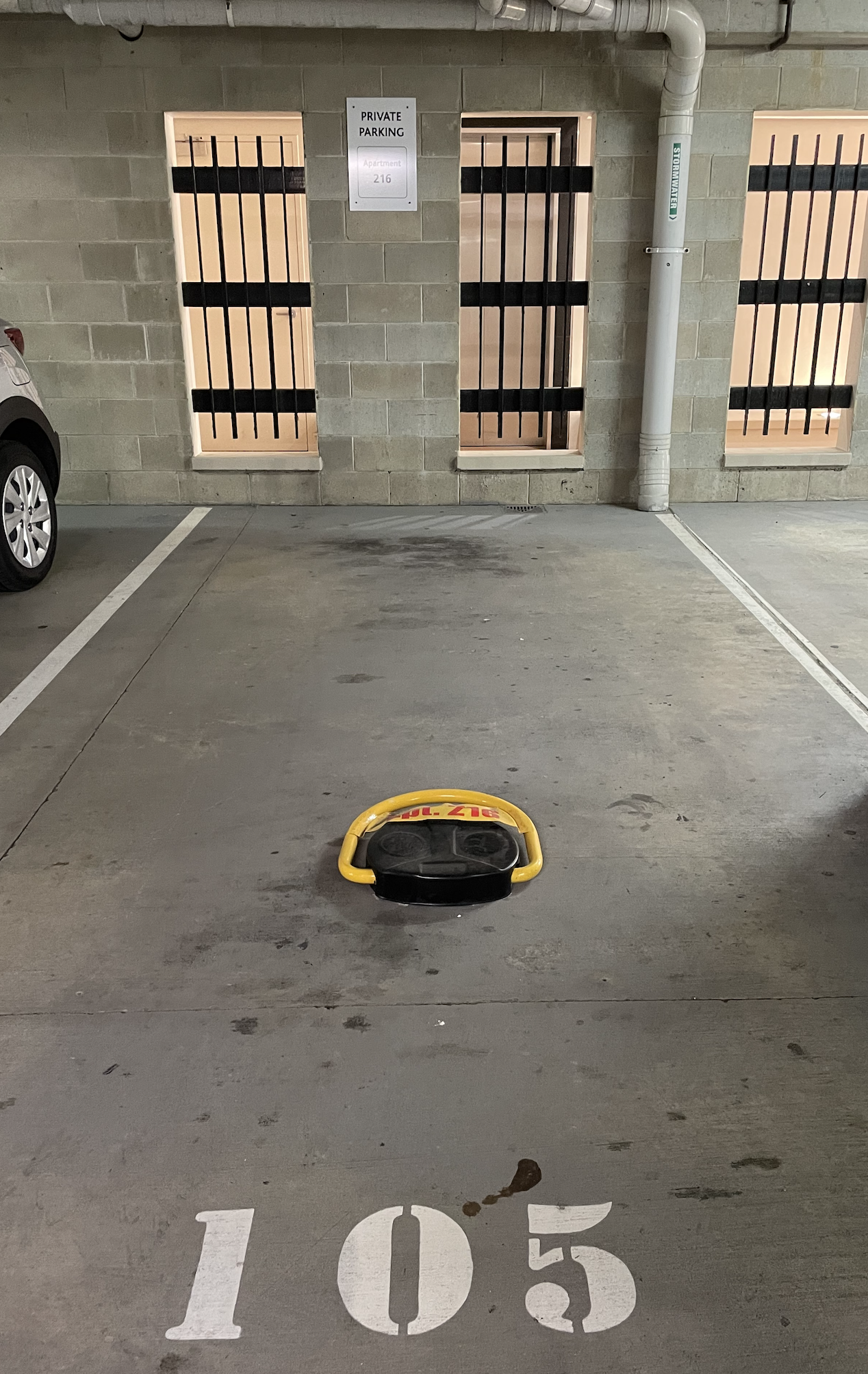 Parking bay number 105,