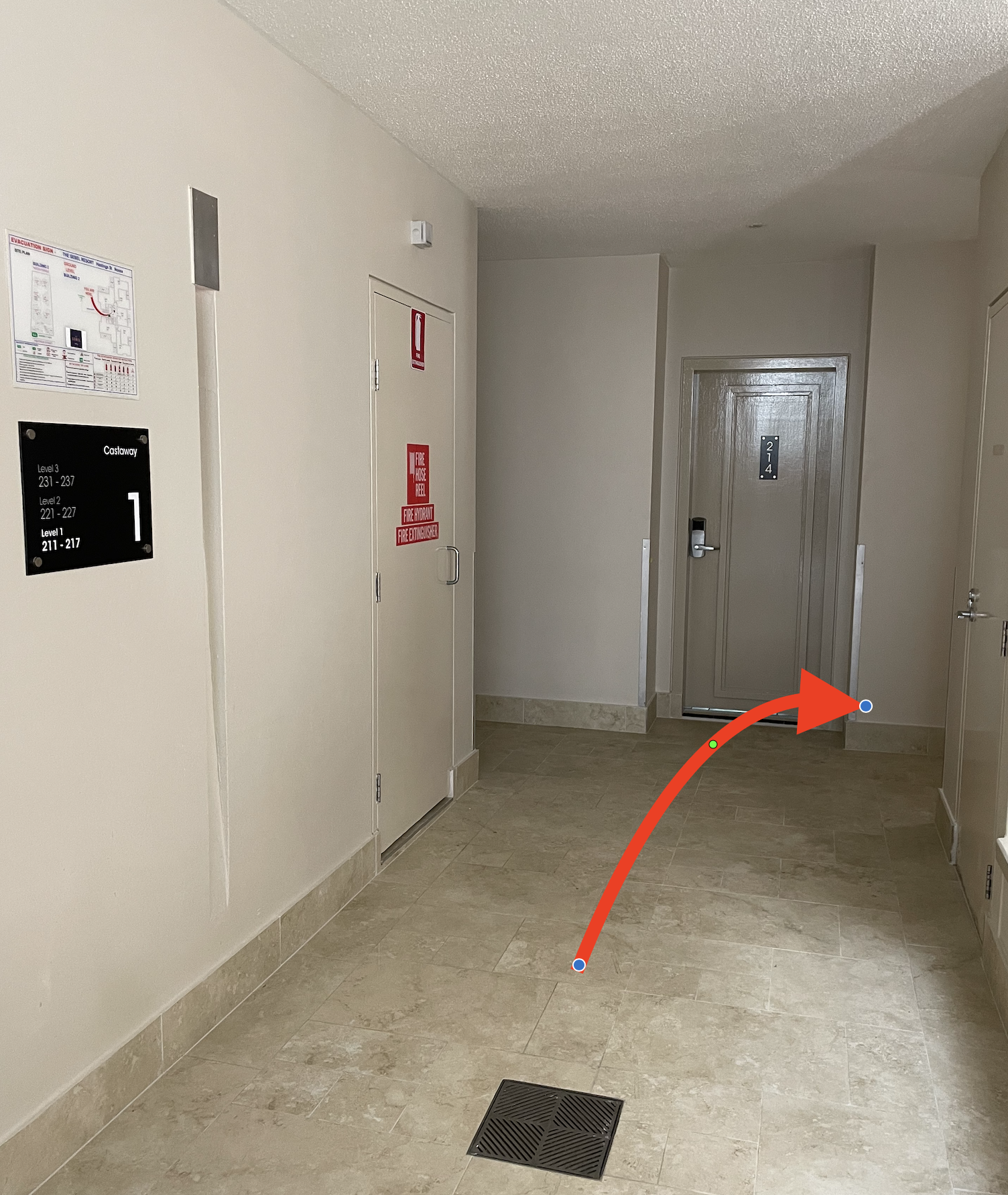 left out of the lifts and right hand turn down the corridor.