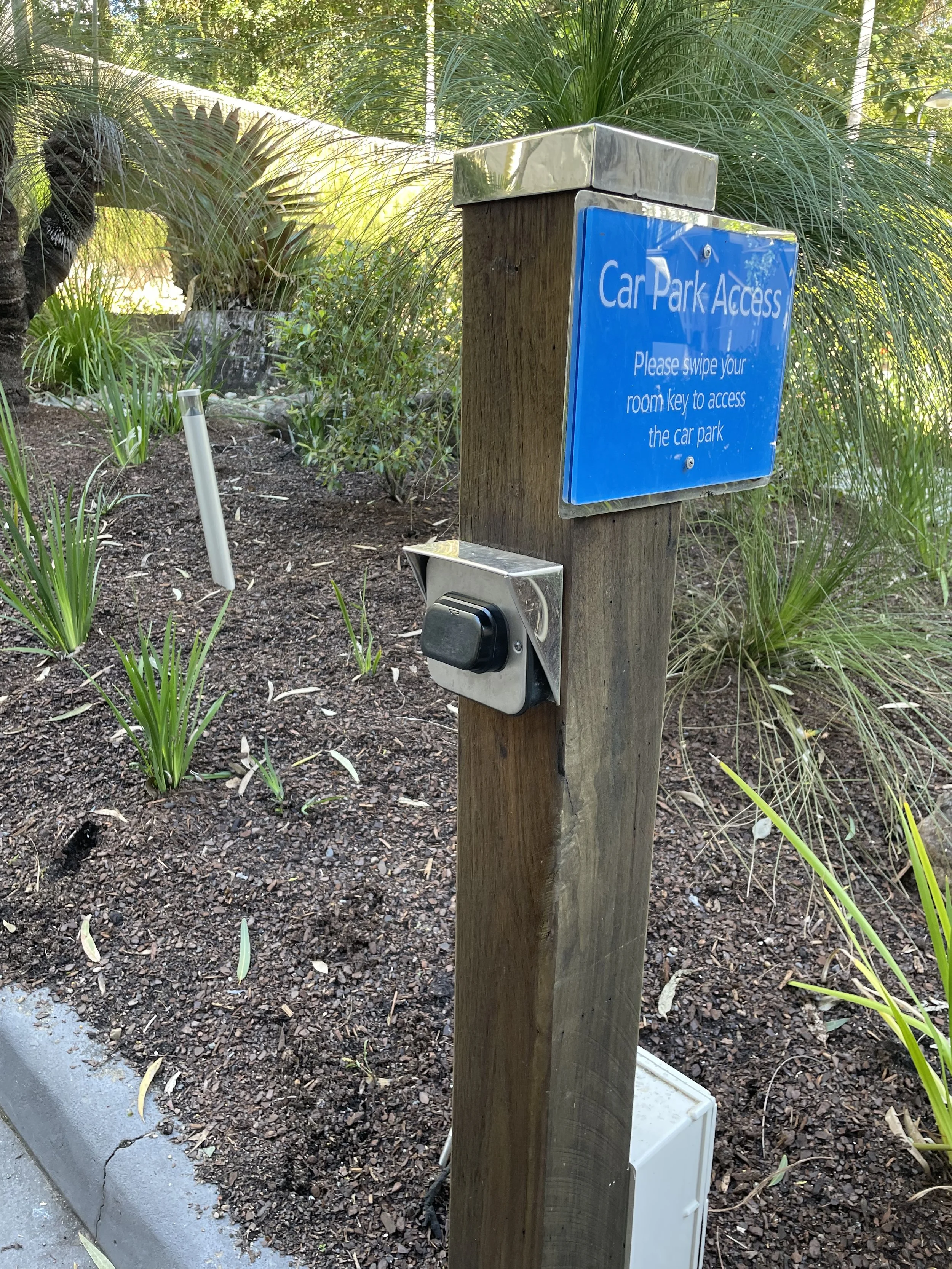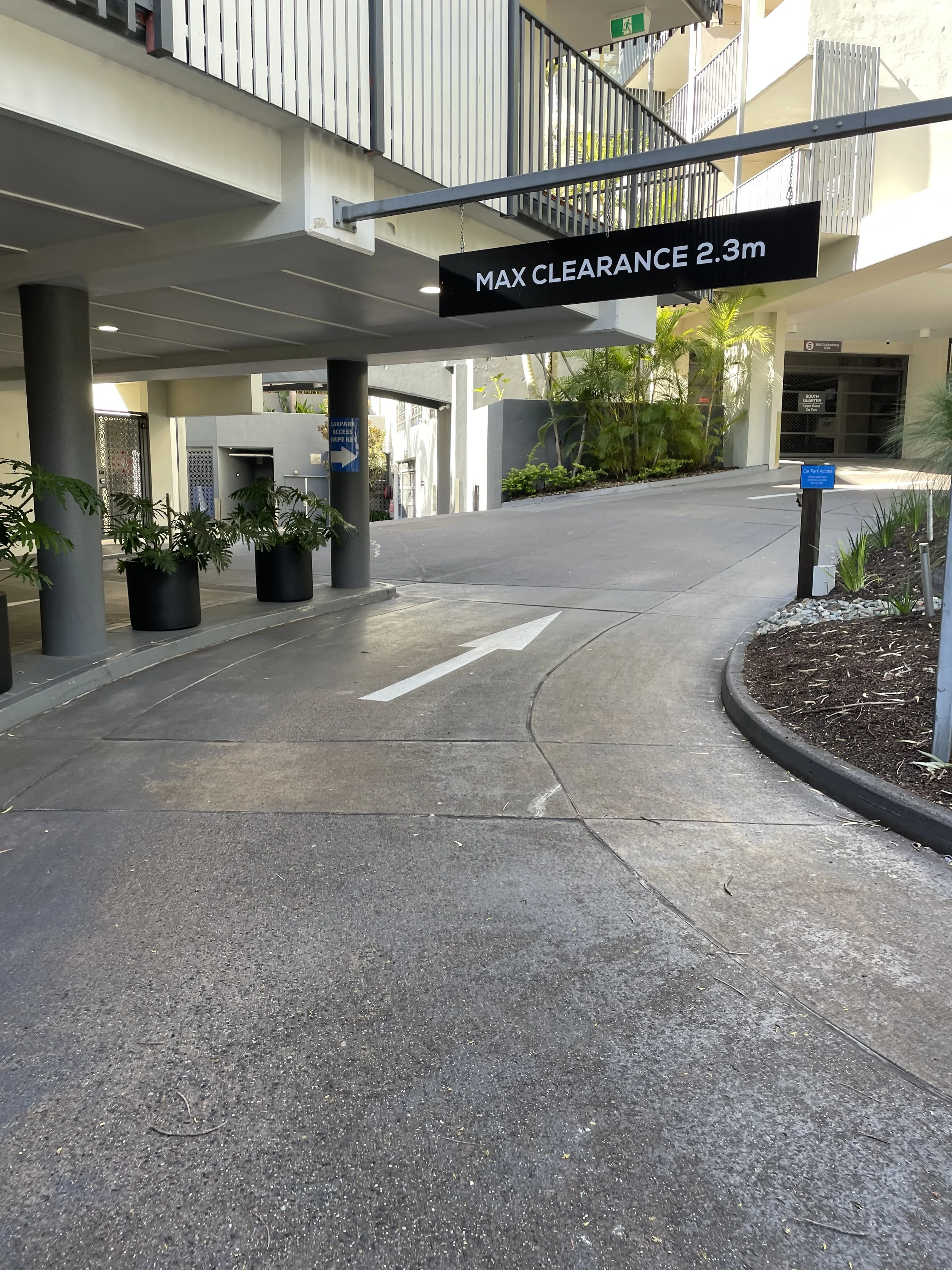 Swipe Apartment Key over the black scanner to open the South Quarter Carpark.